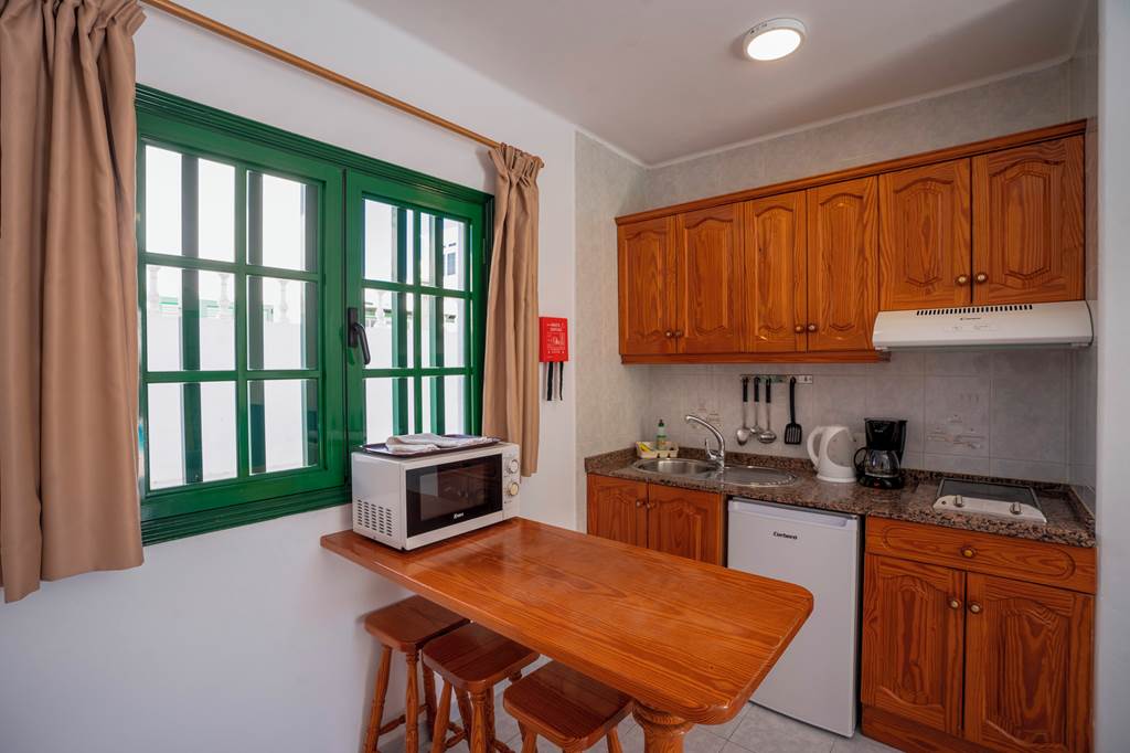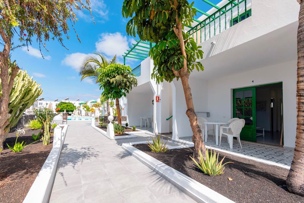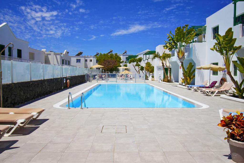 Here at the Apartamentos Aloe you have everything you need for a peaceful self-catering break, with the beach and the centre of Puerto Del Carmen close by you are sure to have everything you need within easy reach! Think whitewashed walls, a scattering of palm trees and that gentle breeze you can be swept away into the relaxation you've been dreaming of. The apartments are all well-equipped and have a traditional style. The large outdoor pool is located within the centre of the complex surrounded by lush greenery and sunbathing areas to chill out.One Bedroom apartments sleep up to 3 adults and have bathroom containing a bath or shower, hairdryer, safety deposit box*, television, kitchenette with 2 cooking rings, fridge, kettle, toaster, microwave, and balcony or terrace.