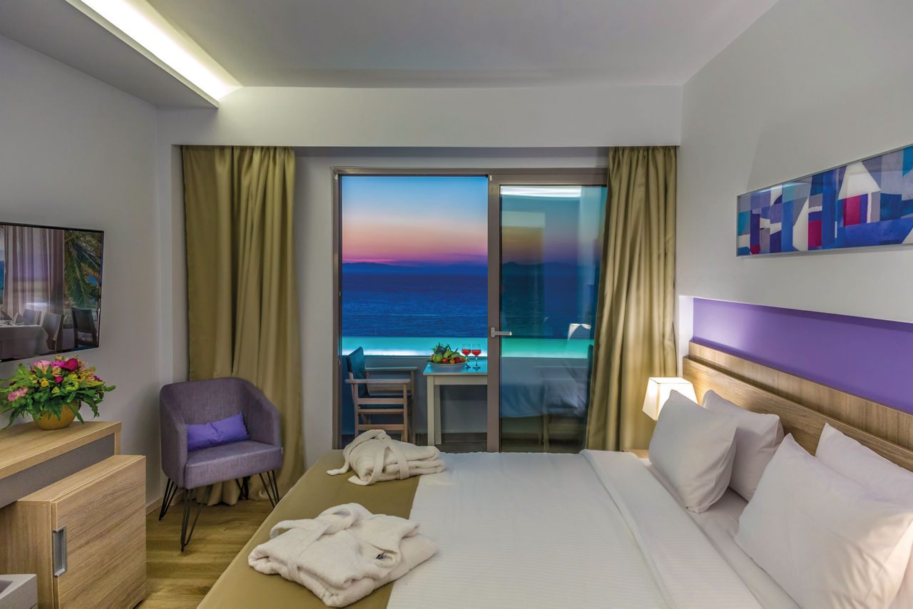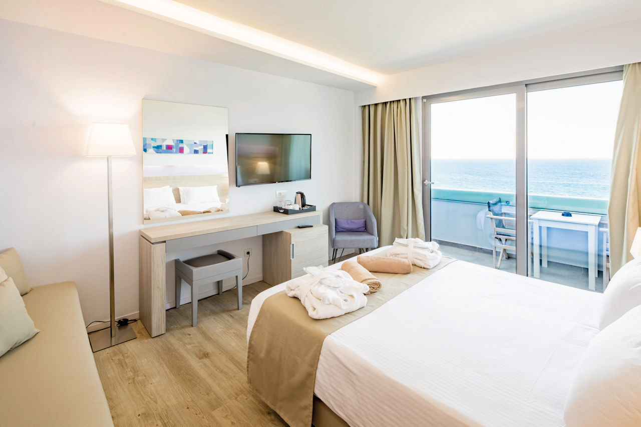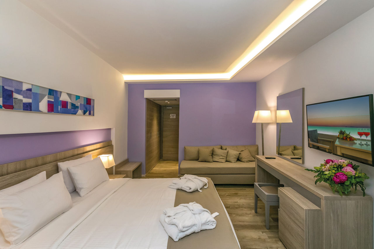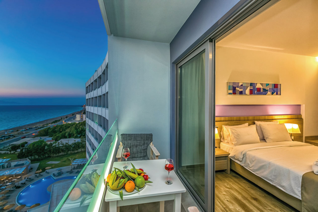 Welcome to a thought-of-everything haven. All the fundamentals have been designed with happy holidays in mind ? that?s why All Inclusive Plus is the standard board. Choose a stylish room then laze by one of the four outdoor pools. The bar?s set high for wining and dining too, with eight excellent restaurants and five fab bars. Enjoy being pampered in the spa and Turkish bath or hit the outstanding gym. There?s often entertainment laid on too. Got the kids in tow? Whisk them over to Rhodes Town for days of fun in the sun or let them make new pals in the children?s clubs.Twin rooms sleep up to 3 adults and have bathroom containing a bath with shower attachment or shower, air conditioning, hairdryer, bathrobe and slippers, flat screen television, fridge, tea and coffee making facilities and balcony. Room upgrade options and Sole Use rooms are also available.