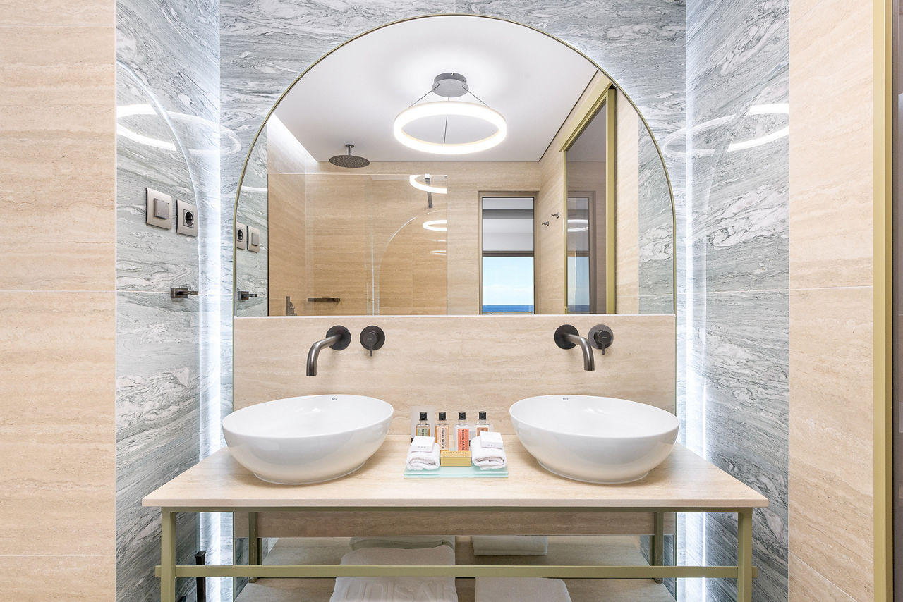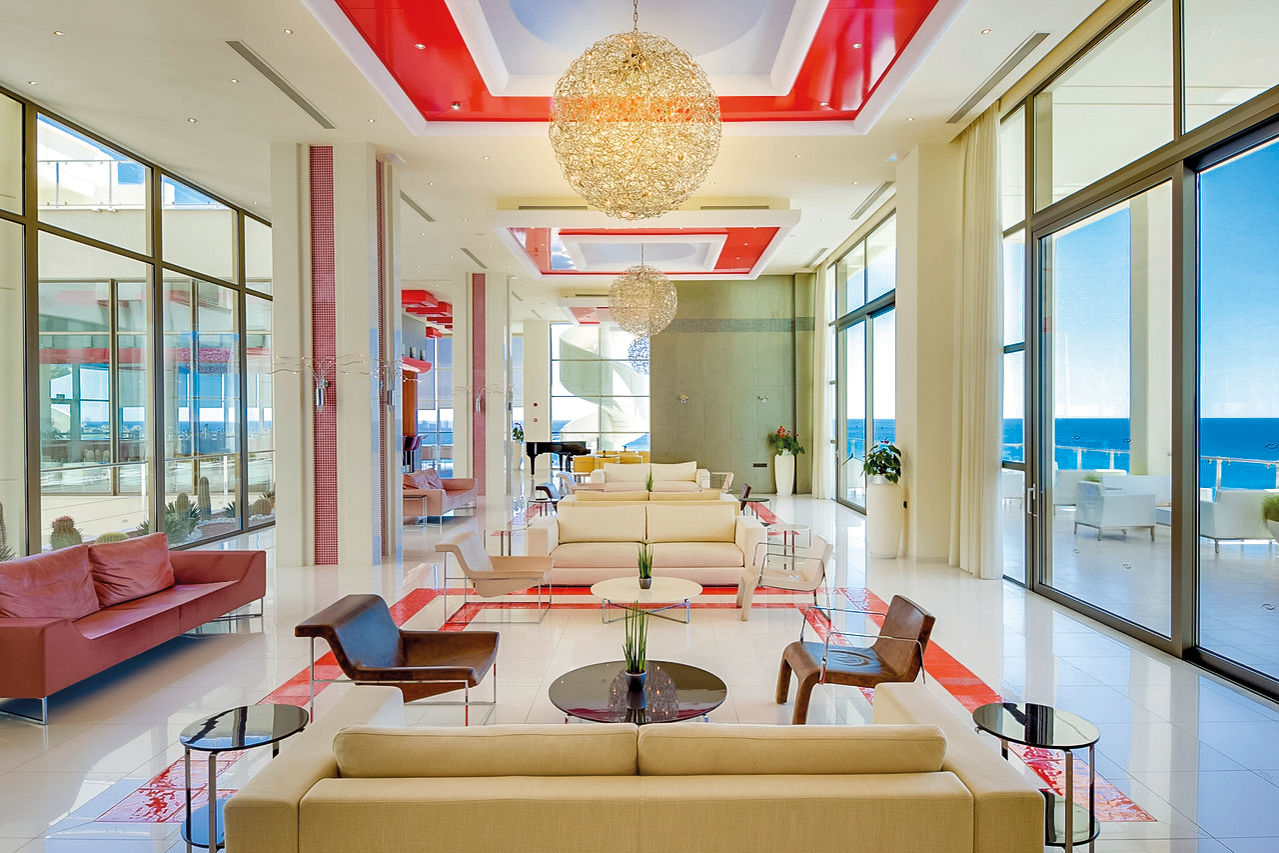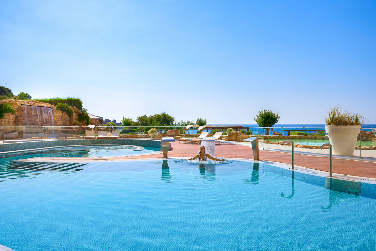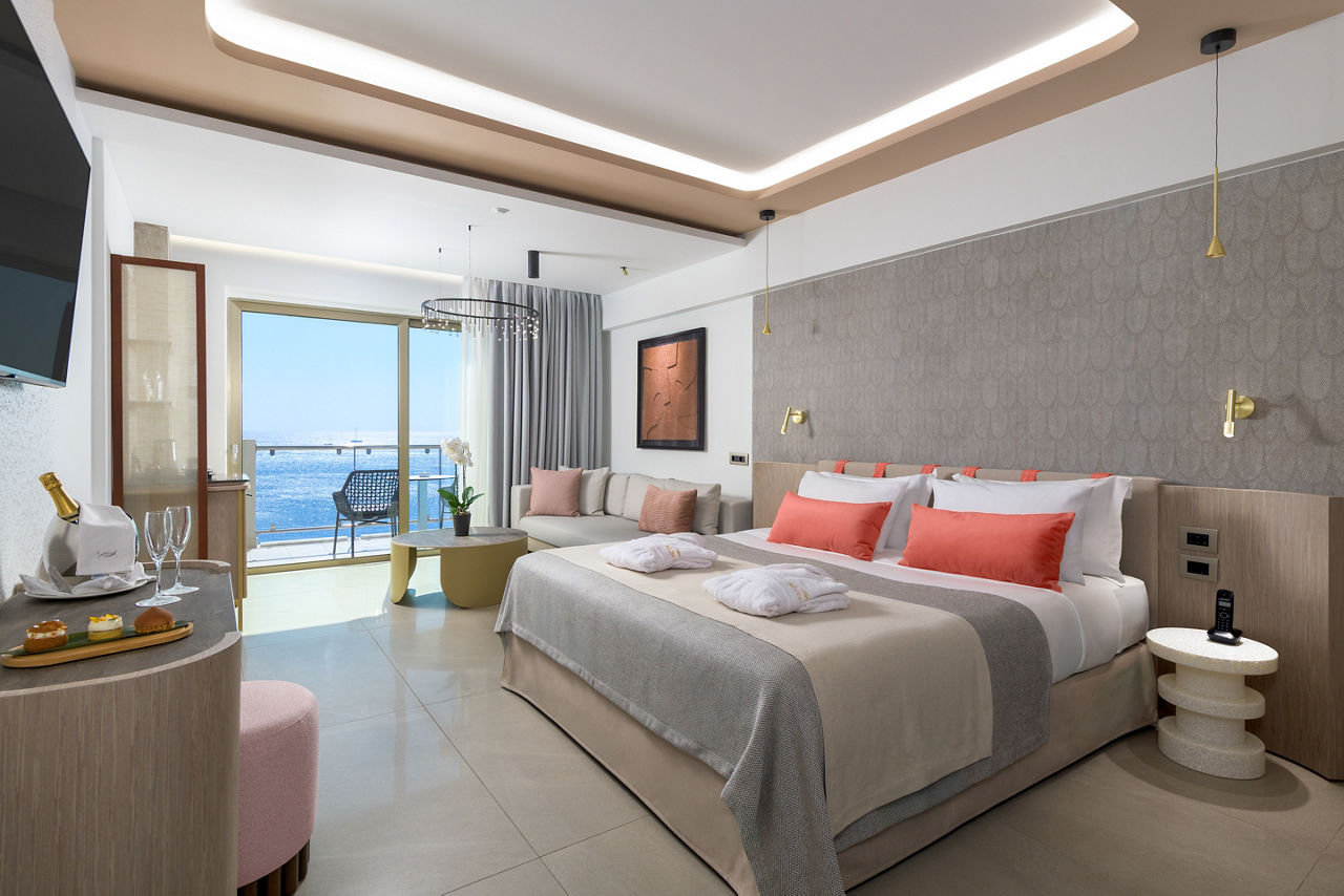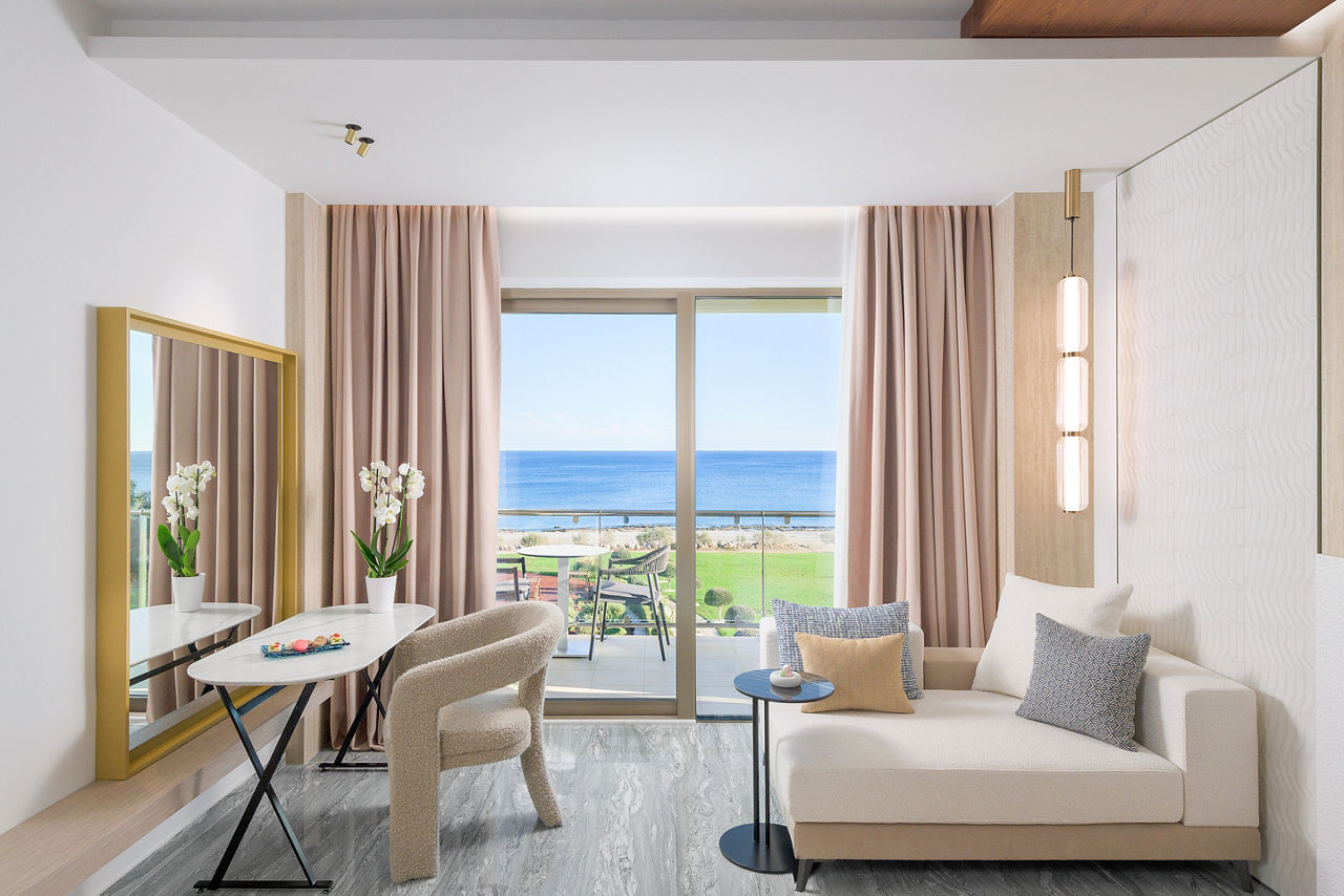 Deluxe rooms with Sea View sleep up to 3 adults and have a bathroom containing a bath with shower attachment, air conditioning, bathrobe and slippers, flat screen television, mini fridge and balcony or terrace. Superior Deluxe rooms with Sea View, Deluxe One Bedroom suites with Sea View, Elite rooms with Sea View, Elite Superior rooms with Sea View, Elite Junior suites with Sea View and Elite One Bedroom suites with Sea View are also available. Elite service is included when booking Elite rooms and includes use of a dedicated lounge bar, all day complimentary juices, refreshments, light snacks in the Elite lounge and a selection of newspapers. Elite rooms include a whirlpool bath.