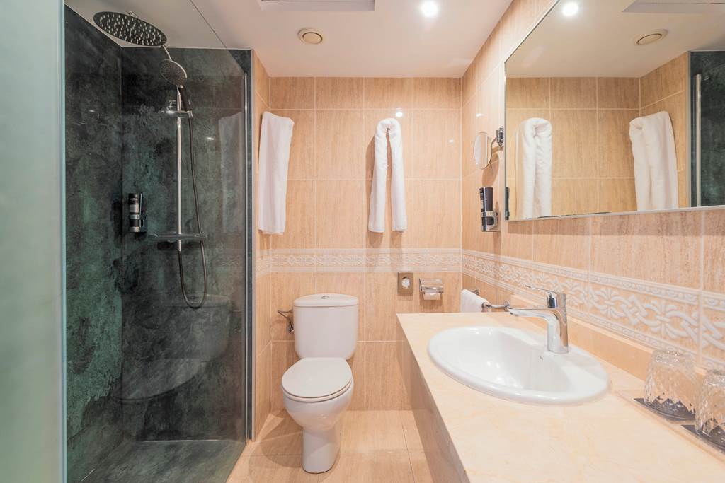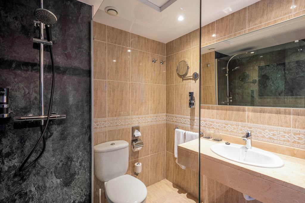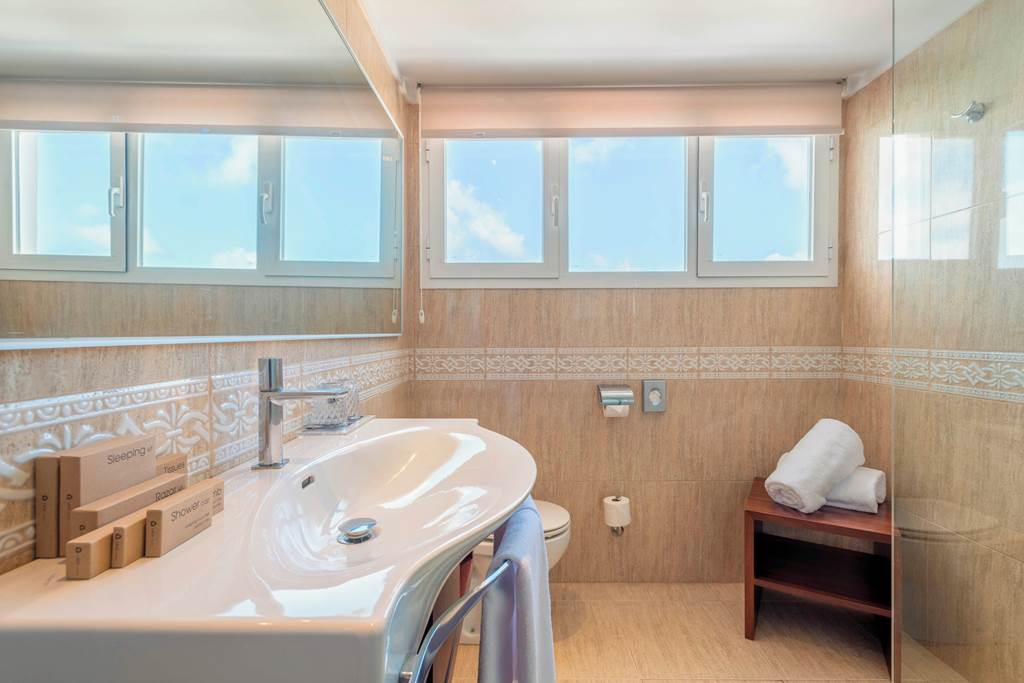 Twin rooms sleep up to 3 adults and have bathroom containing bath or shower, hairdryer, air conditioning, satellite TV, Wi-Fi* and a small balcony. Premium rooms with Sea View have the same facilities as the twin room plus are in a better location, bathrobes and slippers, flat screen satellite TV, tea and coffee making facilities. Twin rooms with Sea View, Family rooms with Sea View sleep up to 3 adults and 1 child and Twin rooms for Sole Use with no balcony, Half Board and Full Board are also available. Please note: Premium rooms are of 4* standard.