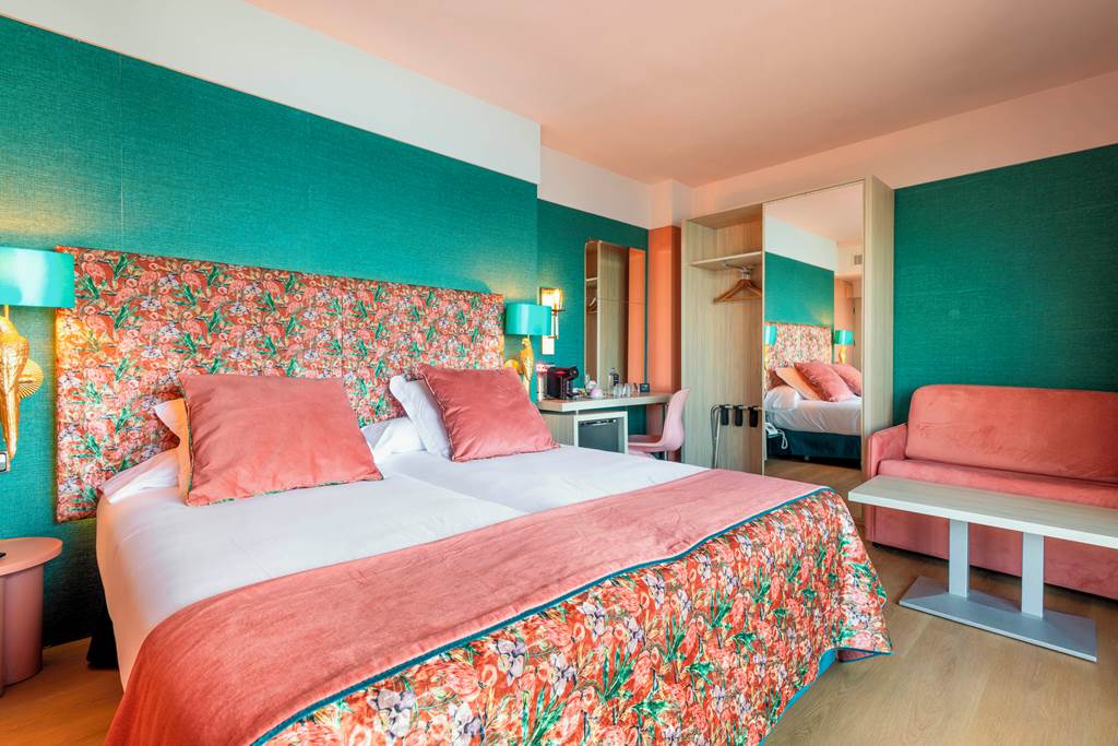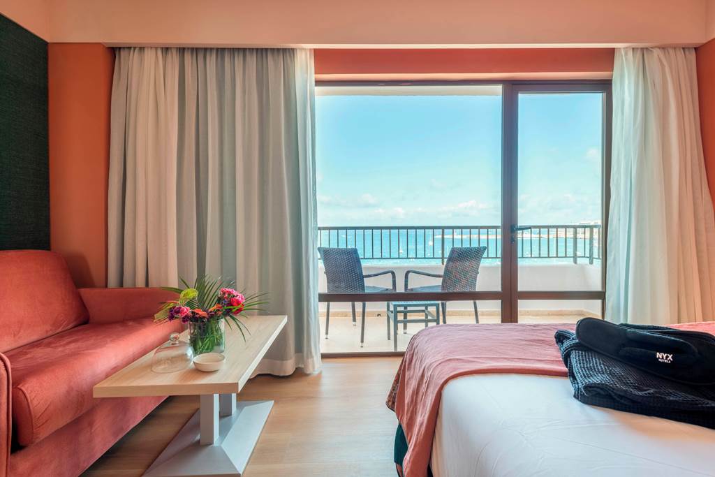 Vibrant décor and a dreamy location? Say hello to your next base in the Balearics. A paradise of pink and turquoise, NYX Hotel Ibiza offers sweeping ocean views and a cocktail bar like no other with an unmatched sunset terrace. You?ll be steps from the beach too, if you can tear yourself away from the live poolside DJs.Twin rooms sleep up to 3 adults and have bathroom containing bath or shower, hairdryer, air conditioning, satellite TV, Wi-Fi* and a small balcony. Premium rooms with Sea View have the same facilities as the twin room plus are in a better location, bathrobes and slippers, flat screen satellite TV, tea and coffee making facilities. Twin rooms with Sea View, Family rooms with Sea View sleep up to 3 adults and 1 child and Twin rooms for Sole Use with no balcony, Half Board and Full Board are also available. Please note: Premium rooms are of 4* standard.