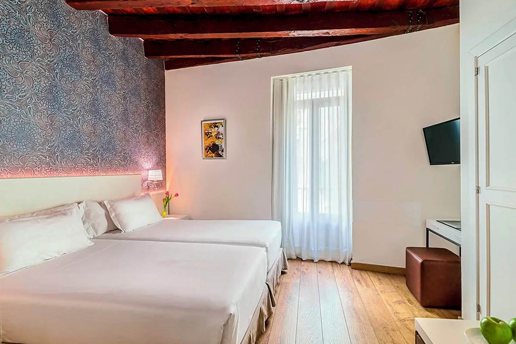 Located in a charming area of the Gothic Quarter in an 18th century listed building, the H10 Raco del Pi fuses modern and tradition perfectly. Close to many of the main attractions such as the famous Las Ramblas shopping street, and Placa de Catalunya, this hotel is perfect for sightseeing and enjoying the Spanish way of life. Breakfast is served in the restaurant and after a long day exploring why not have a relaxing drink in the bar before heading out to sample the nightlife and local tapas?Double rooms sleep up to two adults and have bathroom containing a bath or shower, air conditioning (15 Apr-31 Oct), hairdryer, flat screen television, mini-bar* and safety deposit box*. Triple rooms and Double rooms for sole use are also available.