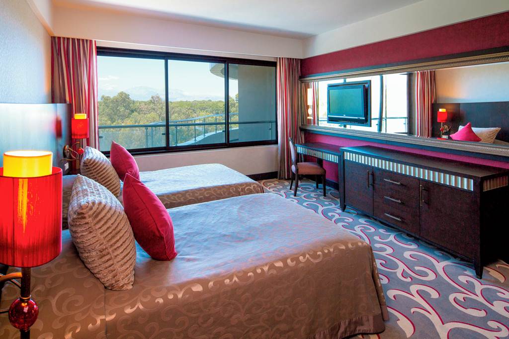 The elegant Cornelia Diamond Golf Resort and Spa has an ideal beachfront location and fantastic facilities that offer something for everyone from sun worshippers to golf enthusiasts. There's a 27-hole golf course, a vast array bars and restaurants, and spacious lagoon style pools to enjoy. Families will love the fun-filled Cornie Kid's Club which has activities for all ages and it's own children's restaurant, cinemas, baby area and teen zone. In the meantime, grown-ups can explore the luxurious spa with a choice of soothing saunas, indulgent treatments, aromatherapy showers and even a reflexology path. If you're looking for high quality accommodation with a touch of luxury, the Cornelia Diamond Golf Resort & Spa is the perfect choice.Standard Double and Twin rooms sleep up to 3 adults or 2 adults and 1 child and have a full bathroom, hairdryer, air conditioning, flat screen satellite TV, free Wi-Fi, bathrobes and slippers, tea and coffee making facilities and a balcony or terrace.