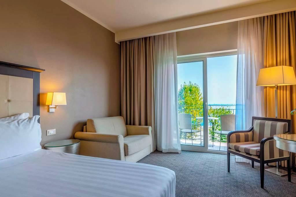 The stylish Hotel Villa Rosa offers stunning lake views and is just a short walk from the resort centre of Desenzano. This 4-star property oozes sophistication with contemporary décor throughout, and rooms are bright and spacious and come with all the amenities you may need to enjoy your stay. Spend the day relaxing around the modern pool area before enjoying culinary delights at the hotel's fine-dining restaurant. Or why not take a ferry to one of the many nearby resorts and explore all that bustling Lake Garda has to offer.Standard Double or Twin rooms sleep up to 2 adults and have bathroom containing a bath with shower attachment, air conditioning, hairdryer, flat screen television and balcony. Upgrades to Superior Double and Twin rooms are also available.