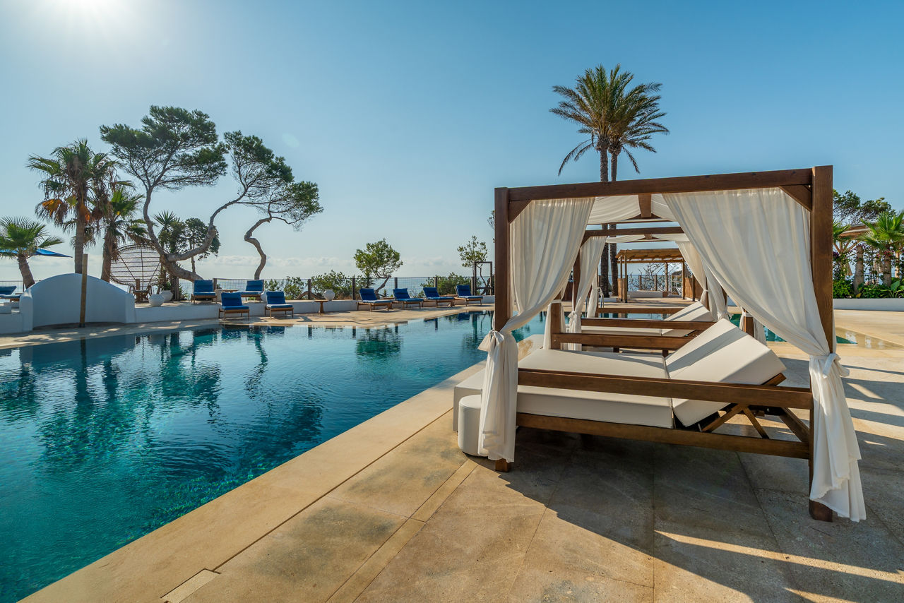 The FERGUS Style Punta Arabi Hotel is an adults-focused, vibrant resort located close by to the bars and restaurants of Playa Es Cana. Set amid pine forests and overlooking the stunning Mediterranean coast, the hotel offers a unique blend of tranquillity and entertainment, with four restaurants, weekly live music, Bed & Breakfast board option and easy access to the island?s famous Punta Arabi Hippy Market and beaches. With stylish village-style accommodation, diverse dining options and an emphasis on relaxation, Punta Arabi is a top choice for couples or friends seeking an unforgettable Ibiza experience.Book today for only £60 deposit per person!