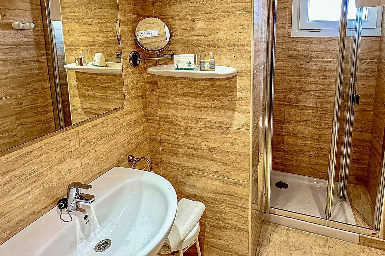 Twin rooms sleep up to 2 adults and 1 child and have a full bathroom, hairdryer, air conditioning*, satellite TV and a balcony or terrace. Twin rooms with Sea View and Twin rooms for Sole Use are also available.