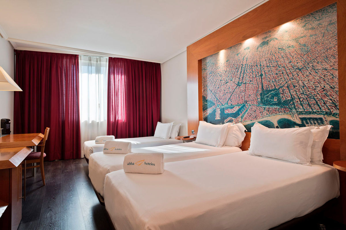 Conveniently located in Sants-Montjuic district. just minutes away from one of the Metro stations in Barcelona with easy access to the bustling city centre, the Abba Sants Hotel enjoys a peaceful setting from where you can search out popular attractions such as the Palacio de Congresos of Montjuich and Camp Nou. The hotel itself provides all the comforts and services expected, with modern and cosy rooms and on-site amenities. This hotel is well connected to public transport, making it a good base in which to experience all Barcelona has to offer.Double or Twin rooms sleep 2 adults and have bathroom containing a bath with shower attachment, air-conditioning (May-Oct), hairdryer, television, mini-bar* and safety box. Triple rooms and Standard rooms for Sole Use are also available.