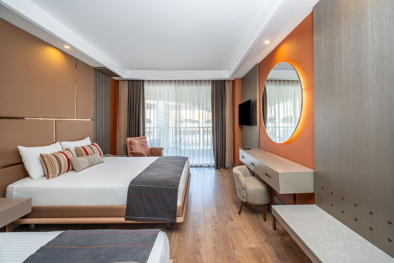 A true beachfront beauty, Arycanda Kirman Premium boasts a spacious pool area framed by palm trees and offers an impressive range of facilities for all ages. Families will love the thrilling aquapark, children?s club, playground, and games room, while adults can unwind with a freshly mixed signature cocktail or indulge in the tranquil spa. With 24-hour All Inclusive Plus, you?ll enjoy a tempting variety of bars and restaurants serving delicious flavours around the clock. Whether you?re seeking relaxation or non-stop fun, this hotel has it all.Room Options/Board Options