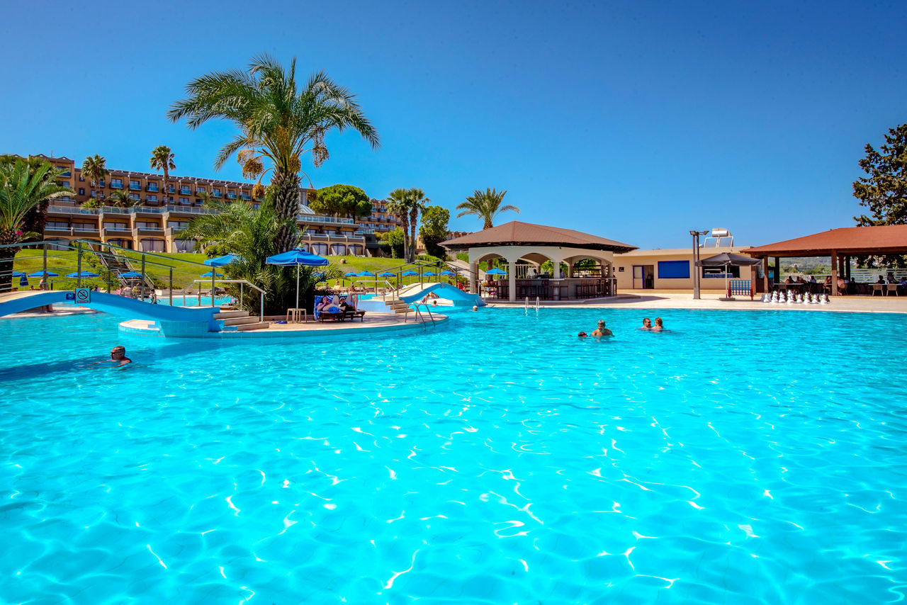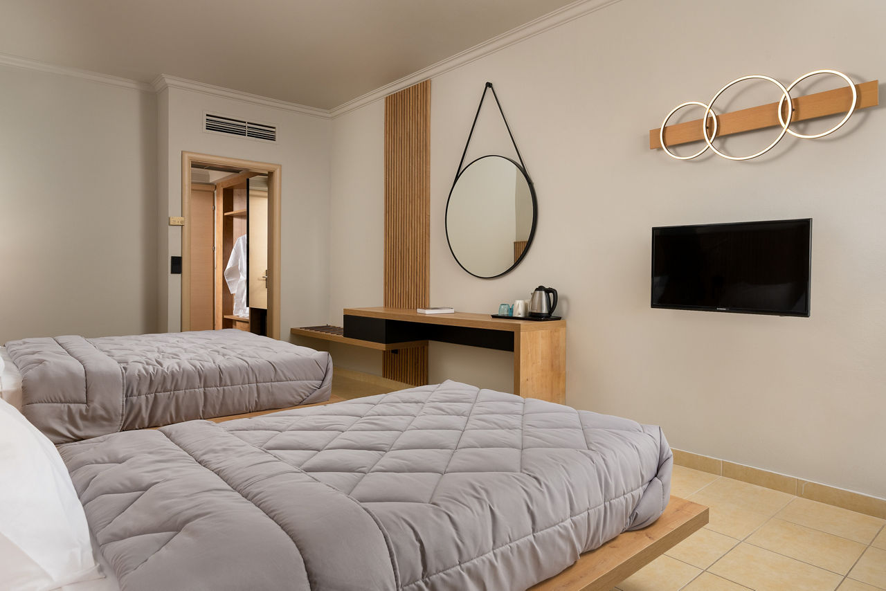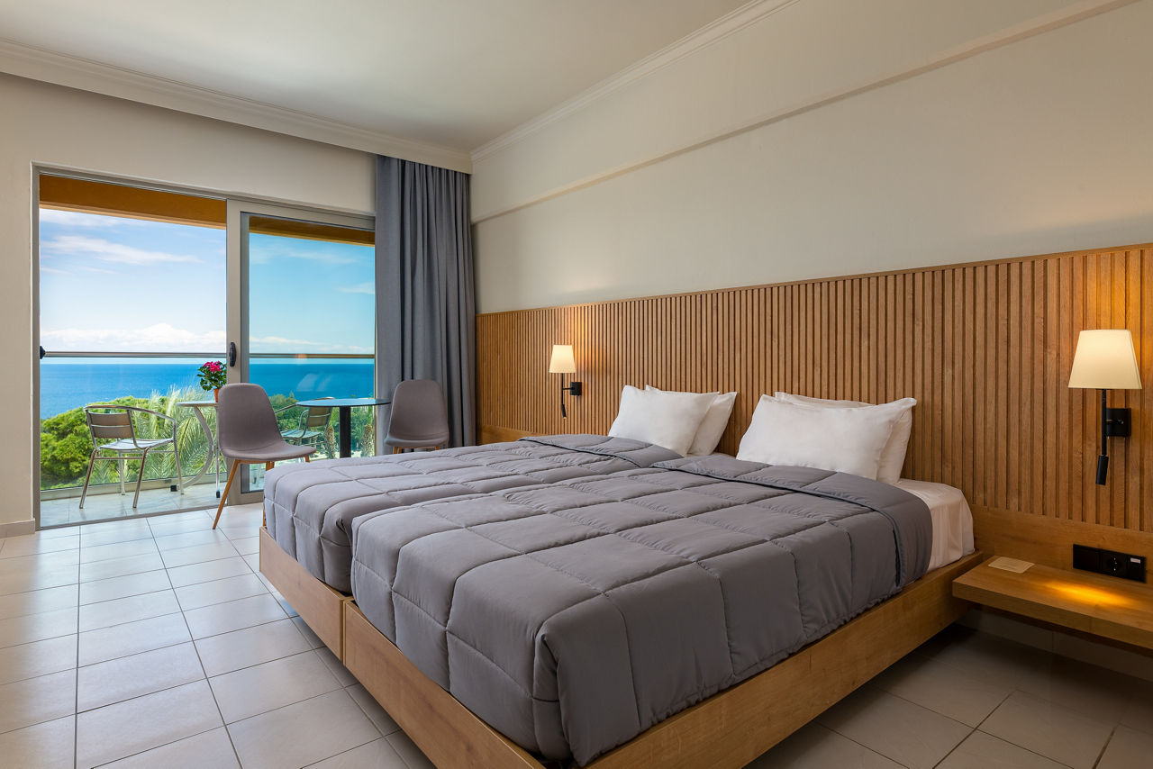 Double and Twin rooms sleep up to 3 adults or 2 adults and 1 child and have a bathroom with shower over bath, air-conditioning (01 Jun - 30 Sep), satellite TV, hairdryer and balcony or terrace. Garden view, Sea view and Family rooms are also available at a supplement.
