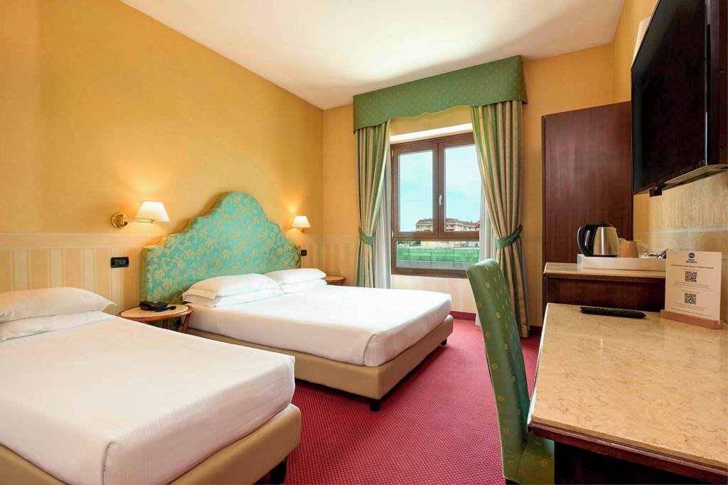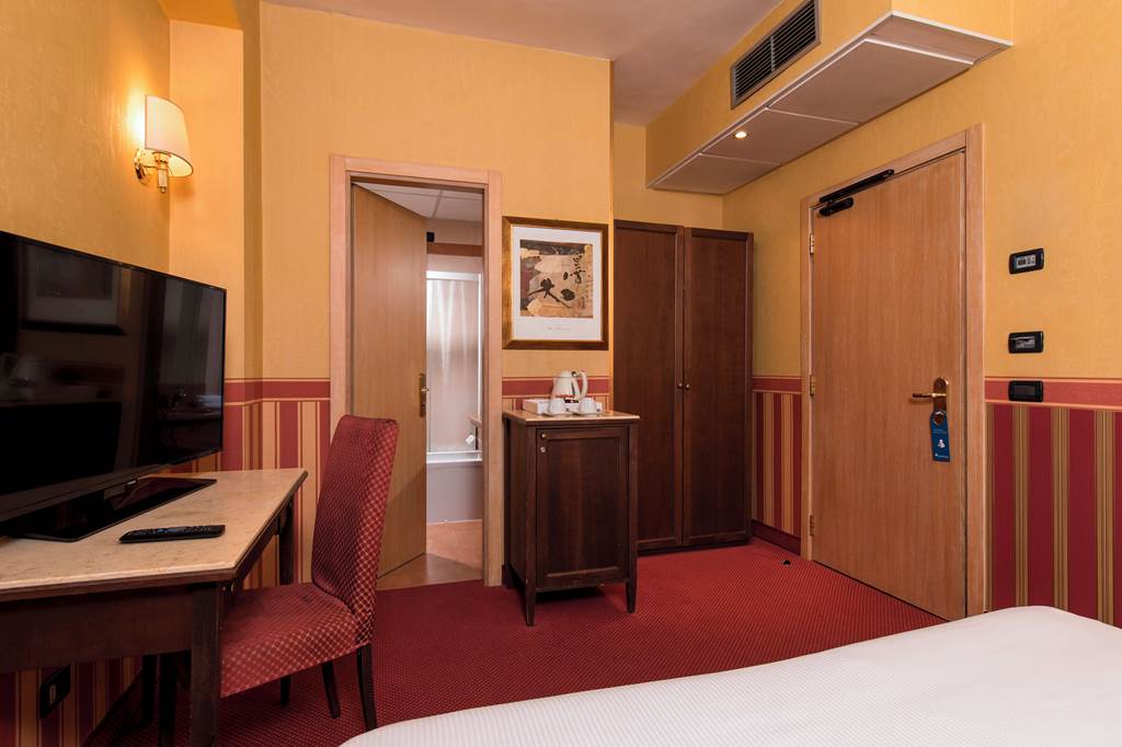 Located a short distance from Venice city in the Mestre mainland area and easily accessible by a short journey by local transport, this elegant hotel is a comfortable and ideal place for your city break. The buffet breakfast is perfect as a start to the day before exploring the amazing sights of Venice. On your return to the hotel, you will find your room is just the place for a peaceful night?s sleep, along with great service this hotel is ideal for those wanting to be away from the main hustle and bustle of city life and yet within easy reach.Classic rooms sleep up to 2 adults and have bathroom containing a bath or shower, hairdryer, flat screen television and mini-bar. Room upgrade options with bathrobe and kettle and family rooms are also available.