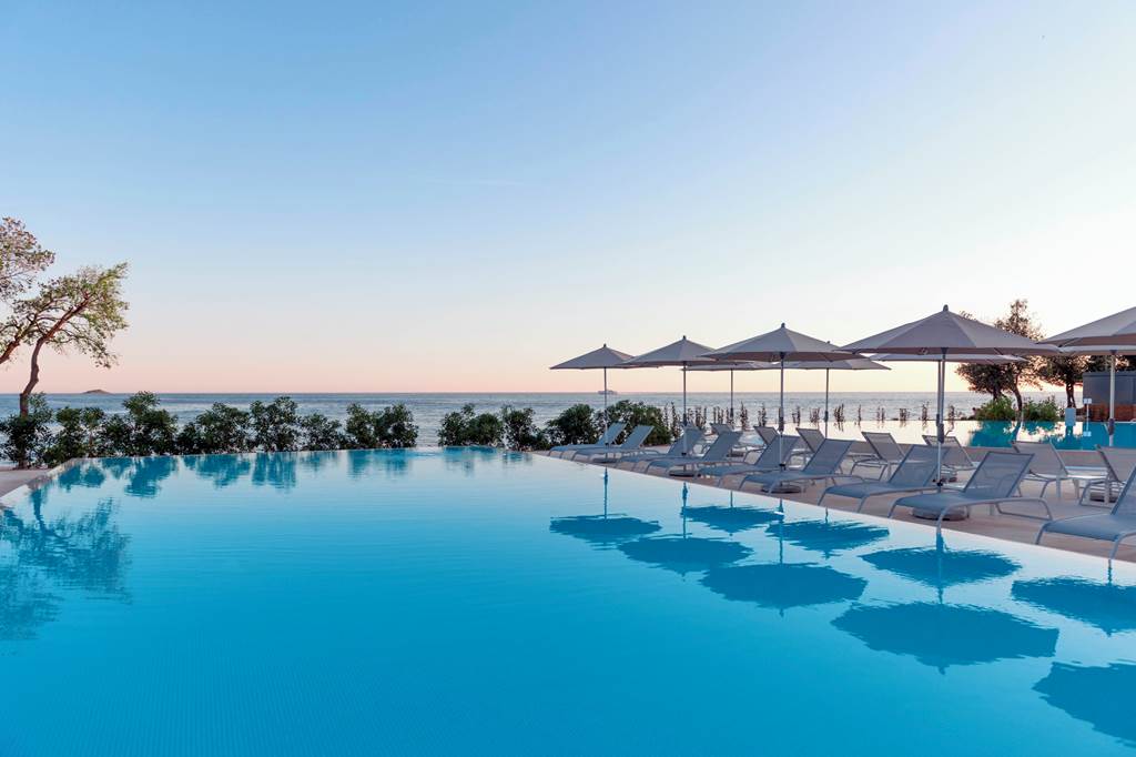 Resort Amarin Apartments located near the picturesque town of Rovinj offer a relaxed escape by the Adriatic Sea. The resort features a beautiful pebble beach, perfect for unwinding by the water, along with outdoor pools for those looking to take a refreshing dip. Guests can also enjoy a variety of sports facilities including beach volleyball and tennis courts. For dining, the resort offers a range of restaurants, providing diverse culinary experiences to suit every taste.