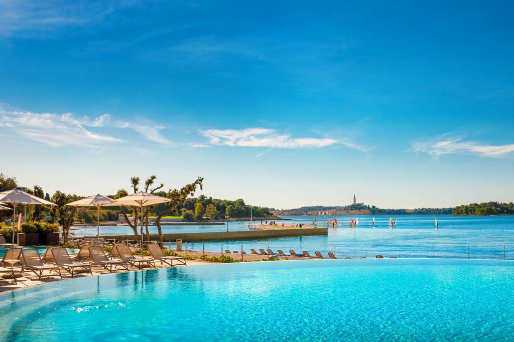 Direct access to pebble beach. 4.6km from Rovinj resort centre. Taxi boats are available to Rovinj* (weather permitting). Tourist train to Rovinj regularly throughout the day*