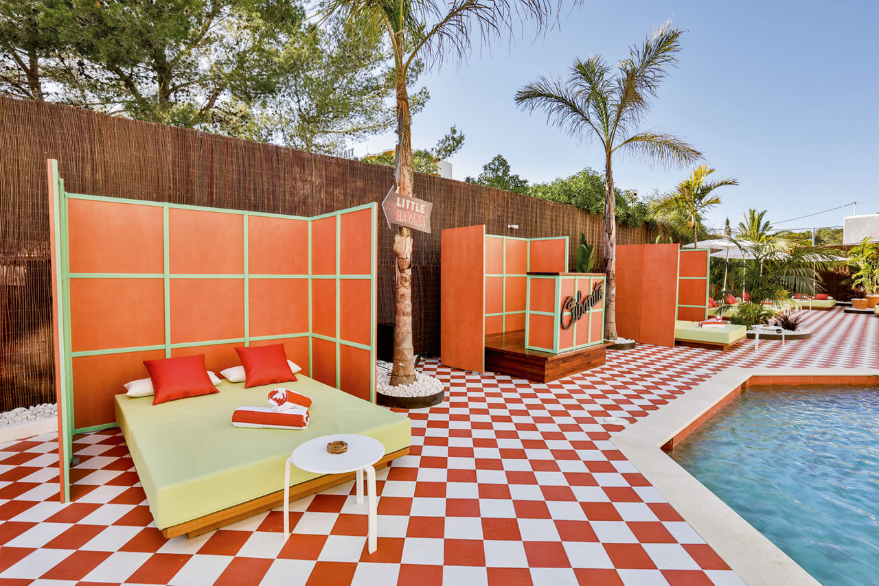 Unique?s an understatement for this quirky Cuban-inspired hangout. Forget plain décor and run-of-the-mill facilities, Cubanito Ibiza won?t settle for anything less than full-blown-fabulousness. Chequered floors, SMEG fridges, monochrome accents, Marshall speakers ? the works. Live DJs? Yep. Poolside swing beds? Oui. Terrace cocktail bar? Obviously.Book today for only £60 deposit per person!