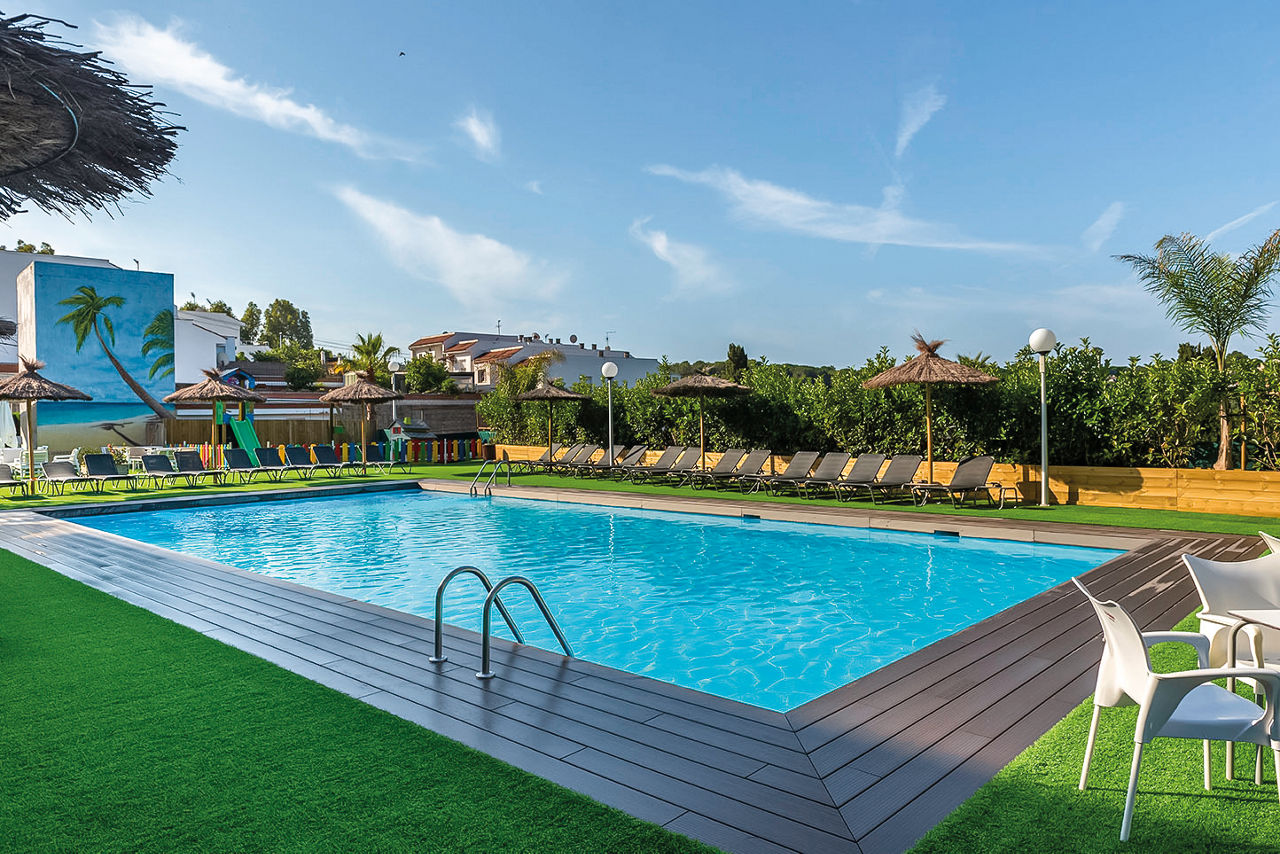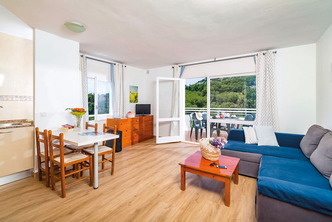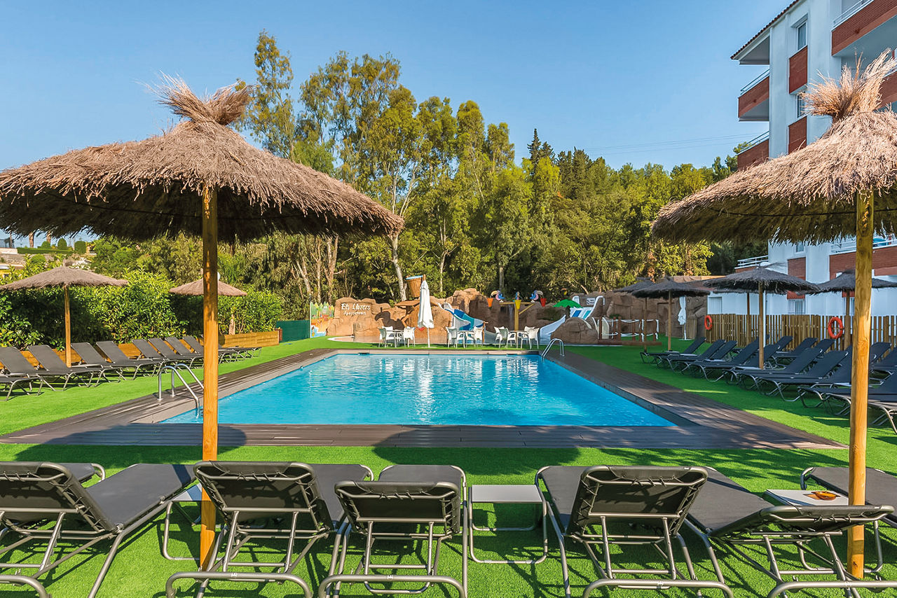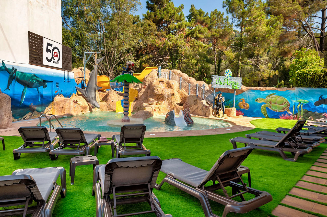 Away from the hustle and bustle of Lloret De Mar you will find the Els Llorers Apartments, boasting a pretty scene with mountain and sea views. Guests can benefit from the quiet location and relax around the pool, taking advantage of the pool bar on offer. And with the fantastic splash park on show, kids will be entertained for days on end! With comfortable rooms and a friendly atmosphere, the Els Llorers Apartments is great for those looking for a holiday which won?t break the bank.One Bedroom apartments with Mountain View sleep up to 4 adults and have bathroom containing a bath with shower attachment, hairdryer, television, kitchenette, safety deposit box and balcony or terrace. One Bedroom Apartments with Sea View are also available.