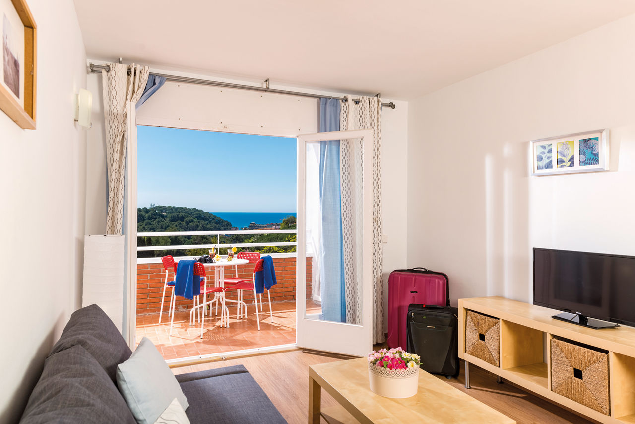 One Bedroom apartments with Mountain View sleep up to 4 adults and have bathroom containing a bath with shower attachment, hairdryer, television, kitchenette, safety deposit box and balcony or terrace. One Bedroom Apartments with Sea View are also available.