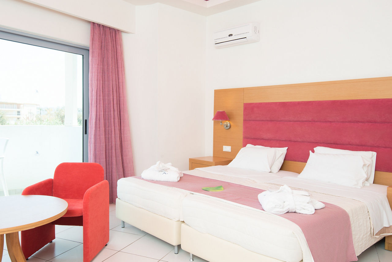 Offering a great All Inclusive package, the Lydia Maris ResortTwin rooms sleep up to 3 adults and have a bathroom with bath/shower, air-conditioning, satellite TV, hairdryer and balcony or veranda. Superior Double rooms, Single rooms, Junior Suites and Suites are also available.