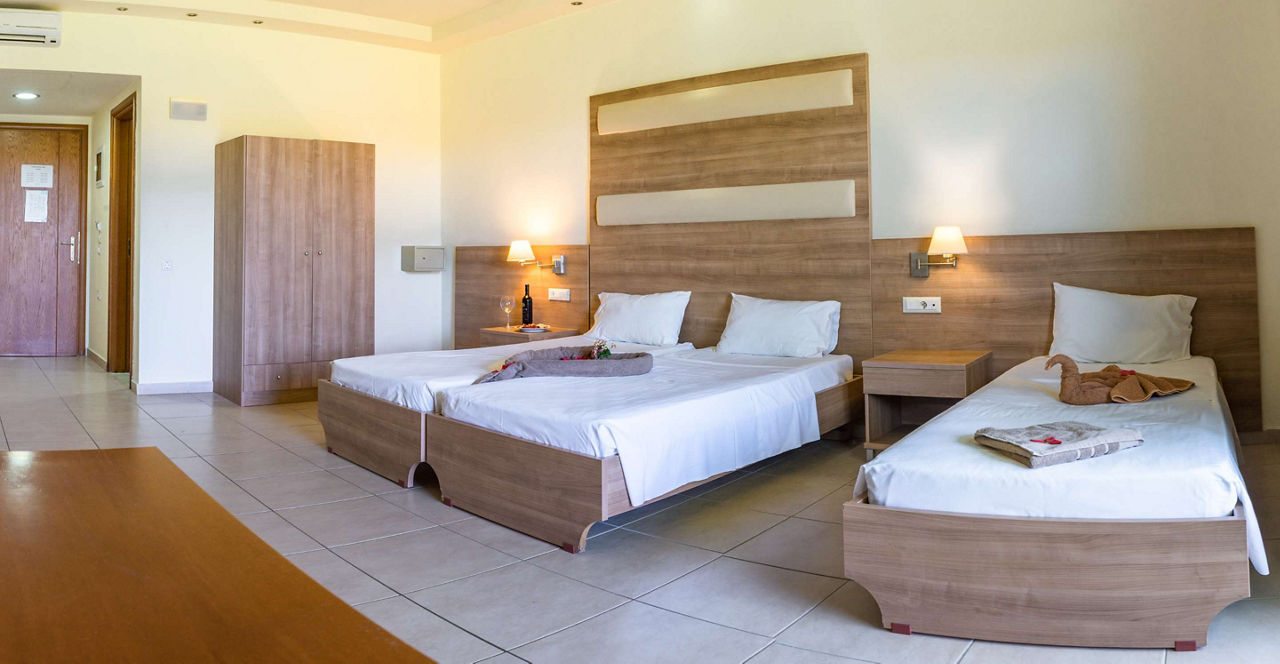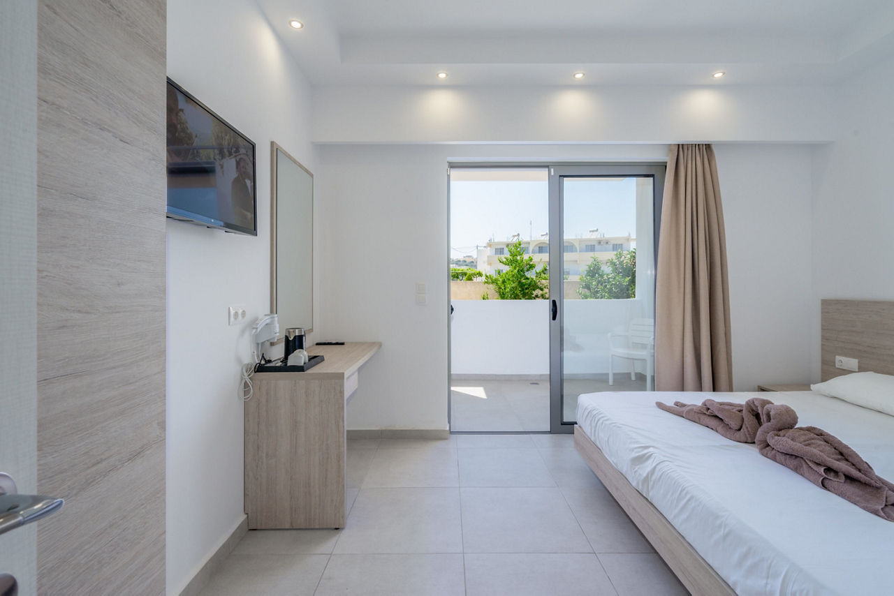 Stamos Plus Hotel sits in a handy spot in Faliraki, just a short walk from the beach and local bars. The hotel features comfortable, modern rooms, plus an All Inclusive option for easy dining. Then outside you?ll find a relaxing pool area with loungers and parasols, It?s a great choice for a laid-back stay close to Rhodes? lively resort atmosphere.Double rooms have bathroom containing a shower, air conditioning, mini fridge, and kettle. Room upgrade options are also available.