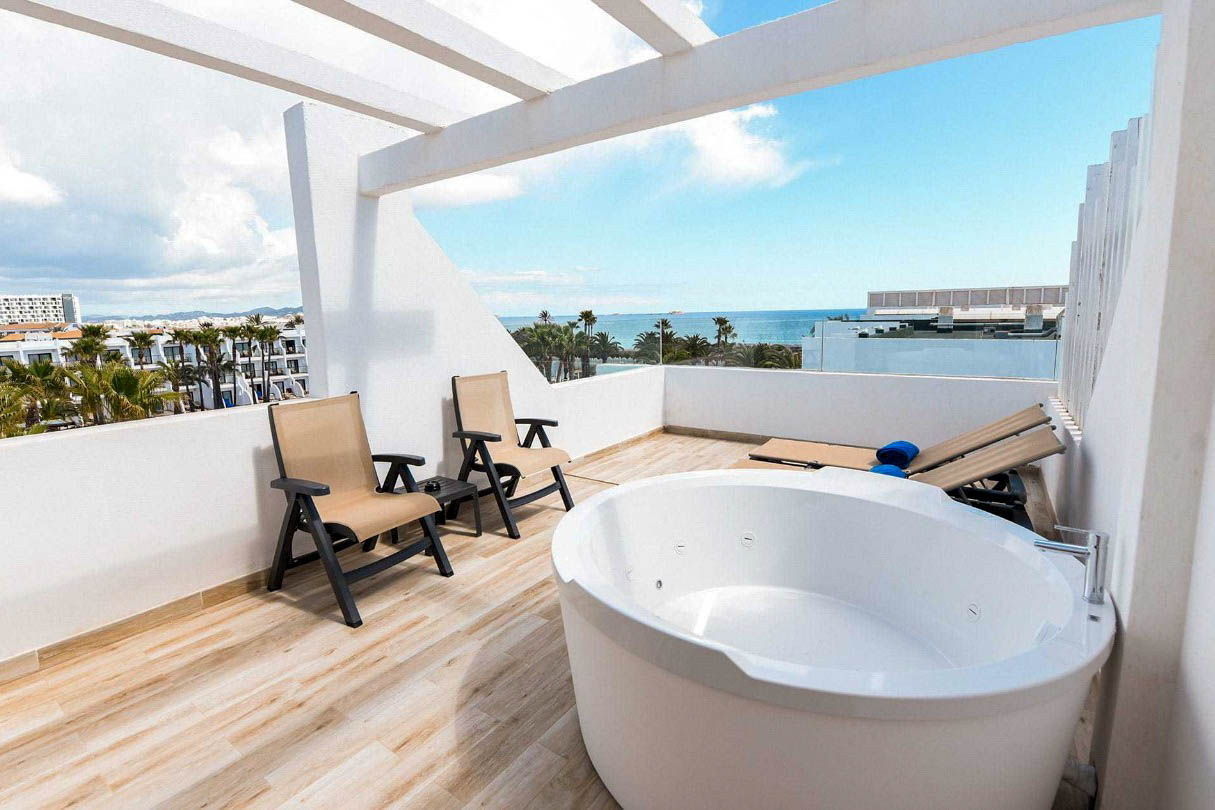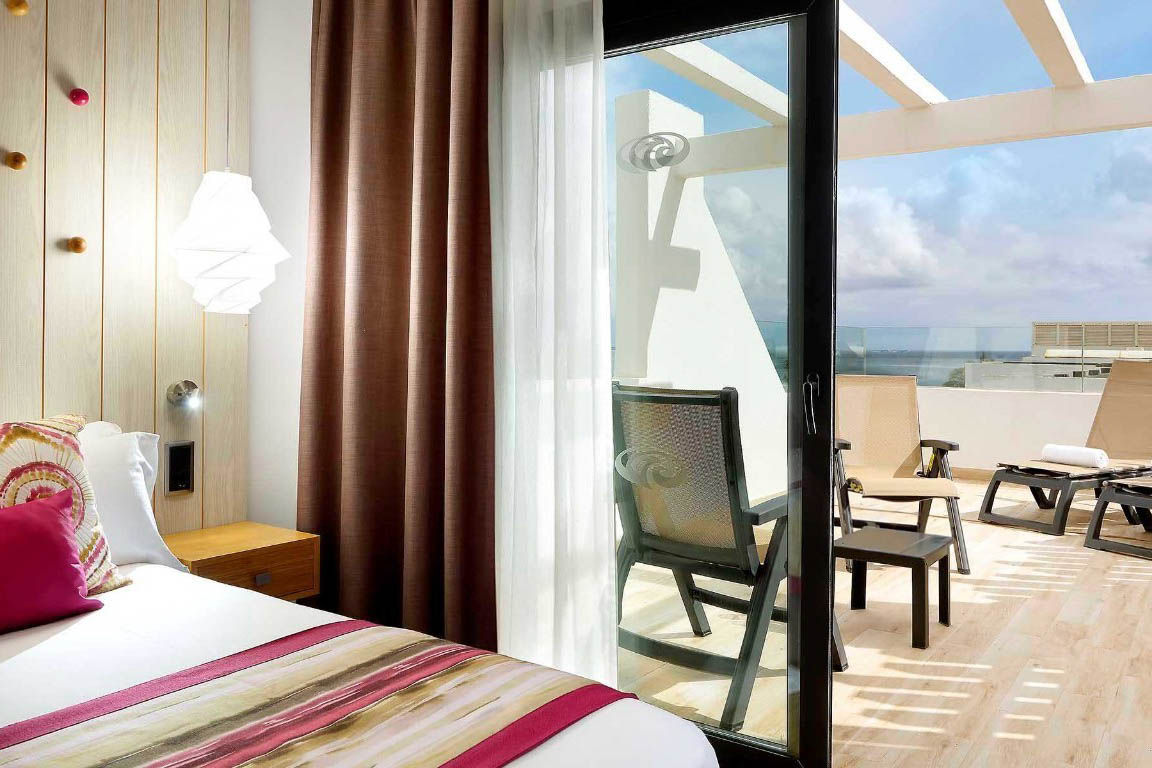 The modern, Grand Palladium White Island ResortStandard Double rooms sleep up to 2 adults and 1 child and have a bathroom containing a shower, air conditioning, hairdryer, bathrobe and slippers, flat screen television, Wi-Fi*, iron and ironing board, tea and coffee making facilities and a balcony or terrace.