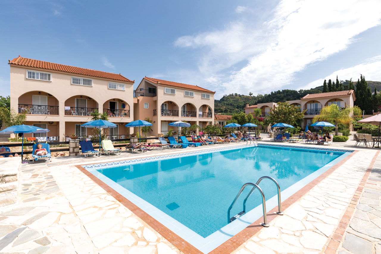 Daniel Hotel is situated a short walk away from Kalamaki resort centre and the beach. Guests can make use of the pool for lazy days in the sun and take advantage of the poolside snack bar offering food throughout the day. This hotel is an ideal hideaway for a quiet escape with a small and friendly atmosphere.Double and Twin rooms sleep up to 3 adults and have bathroom containing a shower, air conditioning*, television, fridge and balcony or terrace.