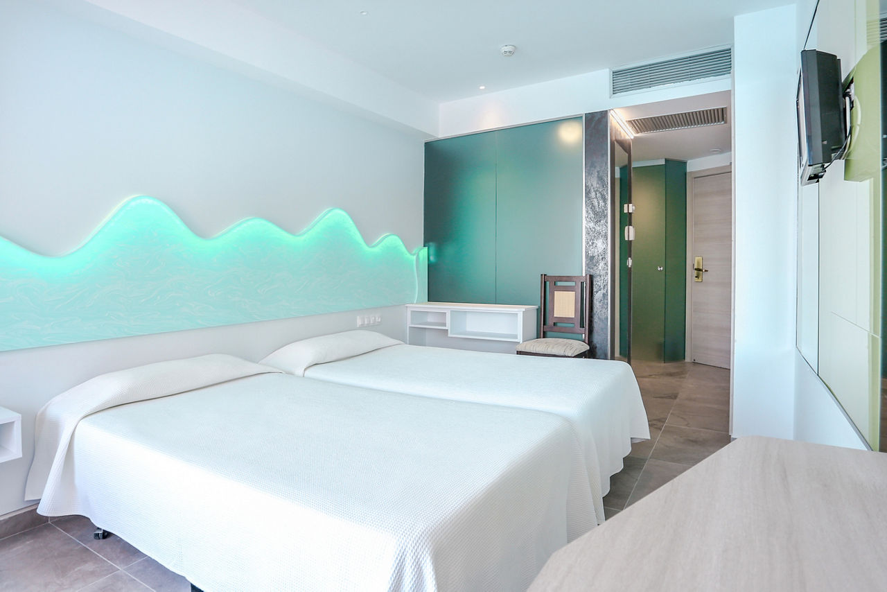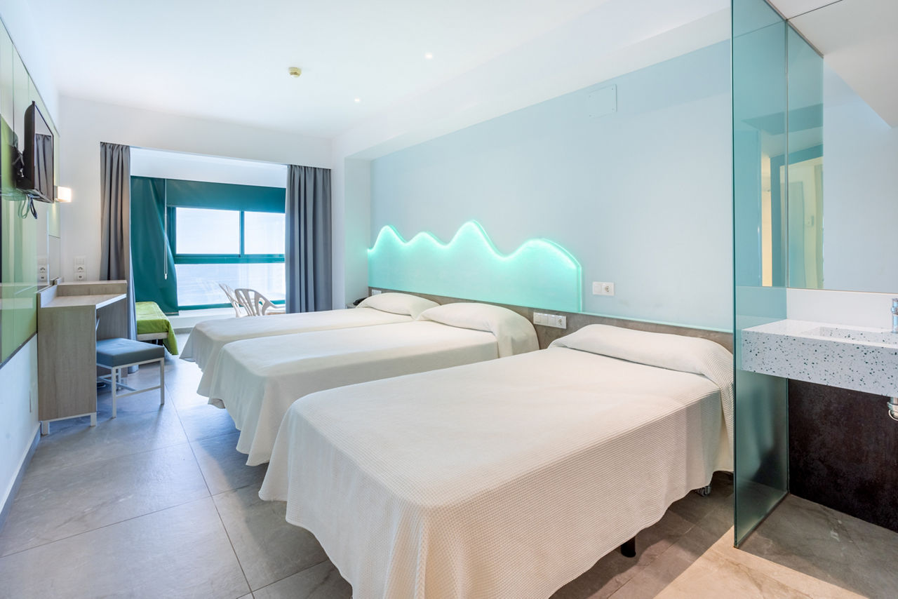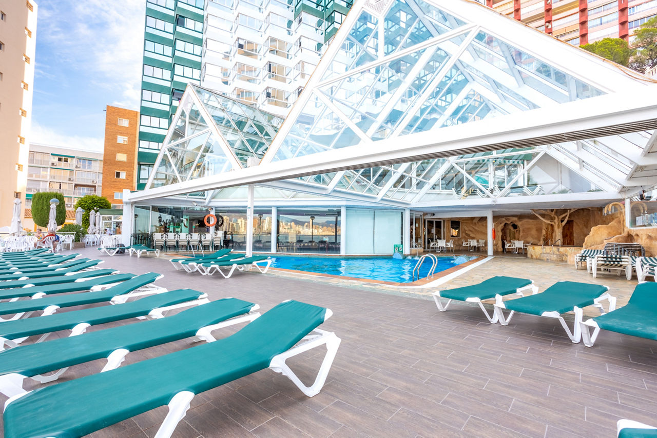 Situated in a quiet spot of Benidorm, the friendly Hotel Benikaktus offers quality accommodation away from the hustle and bustle of the resort, yet near enough for when you want to join the action. The hotel offers fantastic views and is just a moments away from the beach. There?s a lovely pool area to chill-out beside and a great terrace to enjoy a refreshing drink and watch the sun set. This hotel is ideal for anyone looking for a great value and relaxing holiday in Benidorm.Double and Twin rooms with Sea View sleep up to 4 adults and have full bathroom, hairdryer, air conditioning, satellite TV, and balcony or terrace.