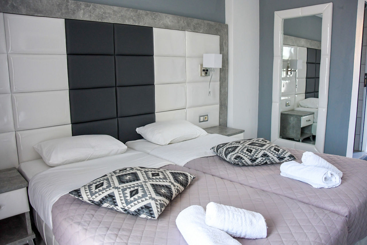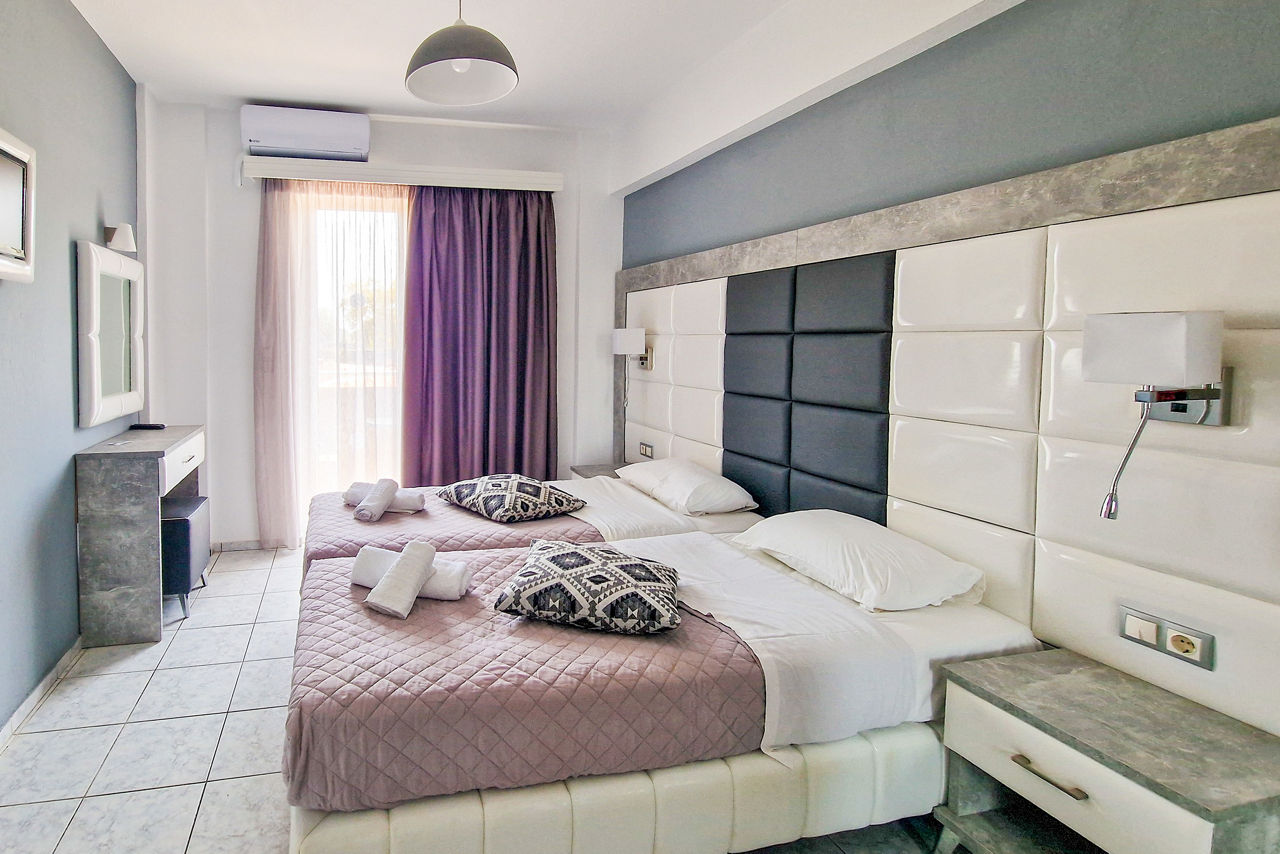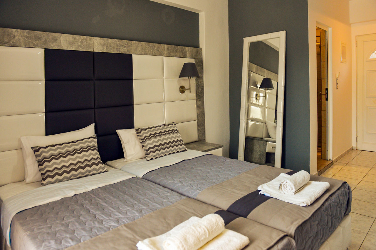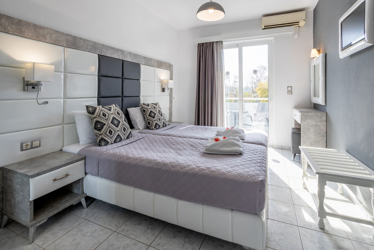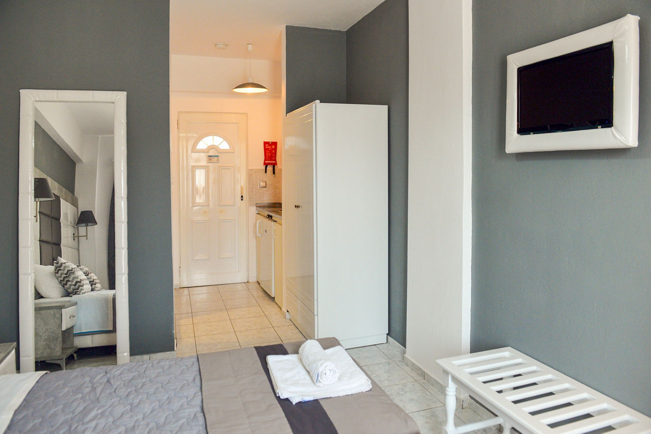 Superior studios sleep up to 2 adults and have bathroom containing a shower, air conditioning*, flat screen television, fridge, kettle, toaster, double cooking rings and a balcony or terrace. Superior Two Bedroom apartments sleeping up to 4 are also available.